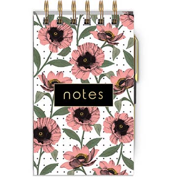 Hardcover list pad with gold foil accents, 3 sticky fl ags, 2 sticky notepads, gold metal ballpoint pen and bungee closure. 40 full-color sheets per pad. 3.75” x 0.625” x 9” · Pen 4.625”