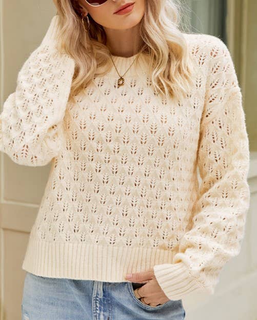 Cozy up in style with this Textured Knit Sweater, featuring intricate knit patterns and voluminous balloon sleeves for a trendy yet comfortable look. The relaxed fit and soft fabric make it perfect for layering over jeans or leggings, while the crew neckline adds a classic touch. Whether you're heading out for a casual day or relaxing at home, this sweater combines warmth with effortless style, making it a must-have addition to your fall and winter wardrobe. Material: * 100% Acrylic MEASUREMENTS: Product Length25"-26"in * 4-6-Small | Waist: 25"-26.5"in | Chest: 33"-34.5"in * 8-10-Medium | Waist: 26.5"-28"in | Chest: 34.5"-36"in * 12-14-Large | Waist: 28"-29.5"in | Chest: 36"-37.5"in * 16-18-XL | Waist: 29.5"-31"in | Chest: 37.5"-39"in Measurements: Product Length 63-65.5cm * 4-6-Small | Waist: 63-66cm | Chest: 83-86cm * 8-10-Medium | Waist: 67-71cm | Chest: 87-91cm * 12-14-Large | Waist: 71-75cm | Chest: 91-95cm * 16-18-XL | Waist: 75-79cm | Chest: 95-99cm
