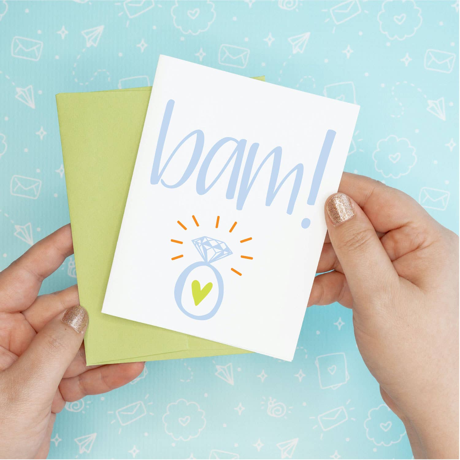 SKU: SO0102 Made in United States Color: Blue and Yellow Finish: Matte Is Set: Individual Occasion Theme: Wedding & Engagement Recipient: Brides & Grooms and Couples Season: Year-Round Special Feature: Blank Theme: Love & Romance Tone: Cute Product Language: English Product Materials: Recycled