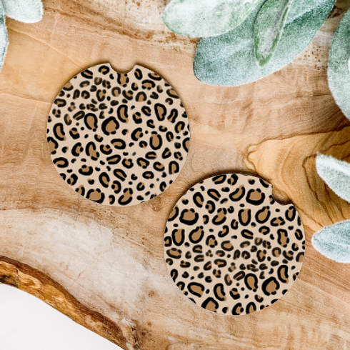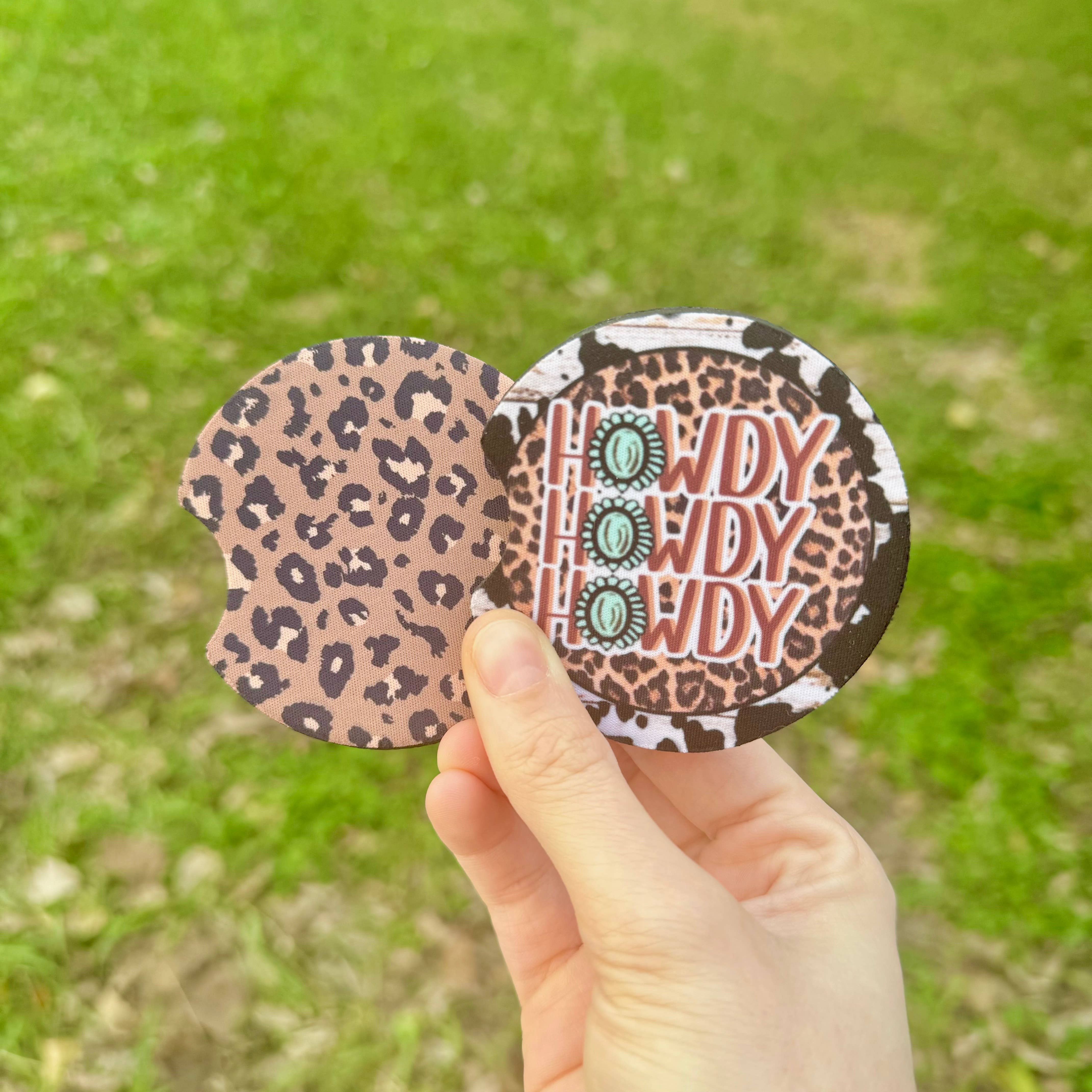 XO Wholesale - Wholesale Car Coaster - Women's - Brown Leopard Western Howdy Neoprene Car Coasters