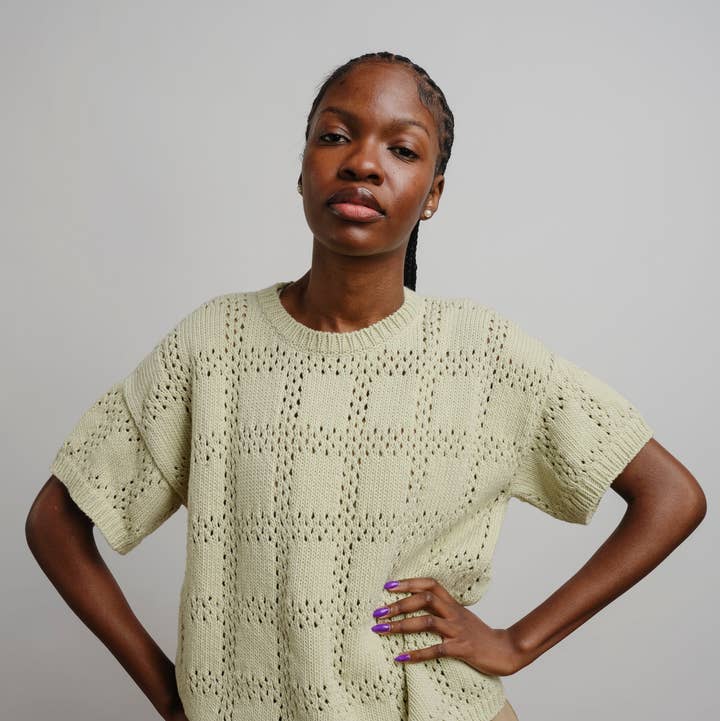 An everyday essential with just enough detail. Knit with 100% cotton, the chevron stitch adds texture and movement while creating a soft, flattering drape. Clean, minimal, and made with purpose. * 100% Cotton * Artisan made in Peru with Fair Trade practices to maintain ethical and responsible integrity * Slightly cropped and boxy body