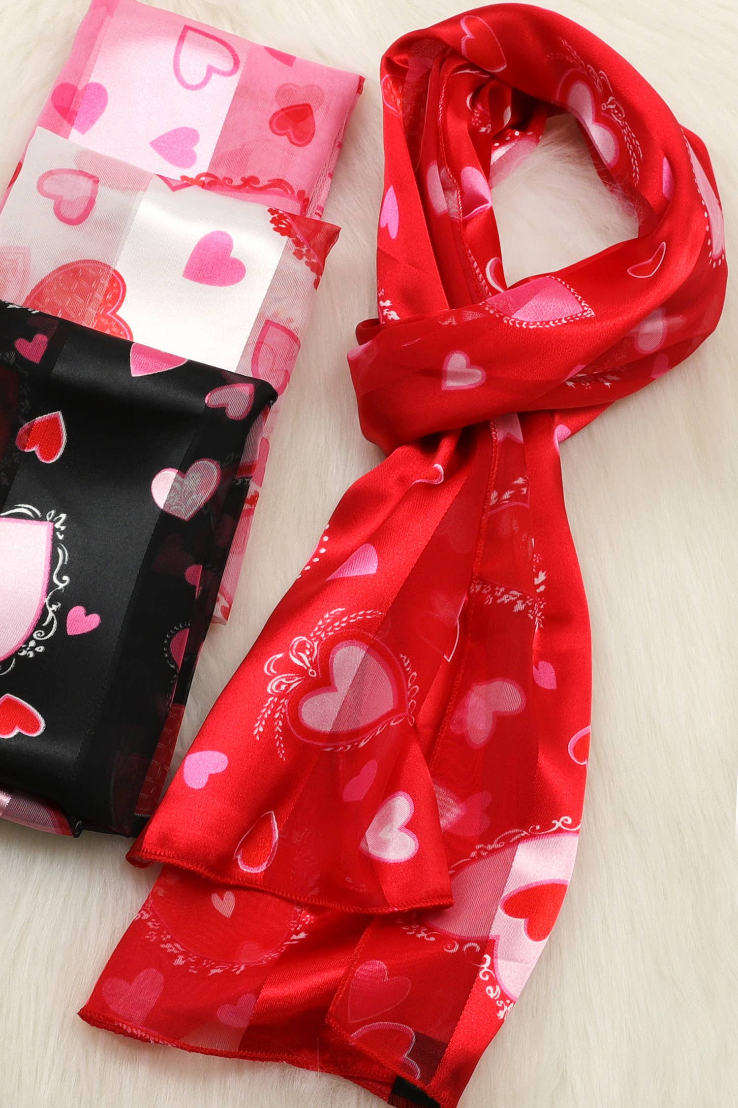 Wholesale Christmas Valentine Satin Stripe Scarf Holiday Gift Heart A