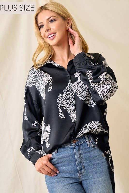 -Cheetah Print Button Up Shirt -100% Polyester made in China