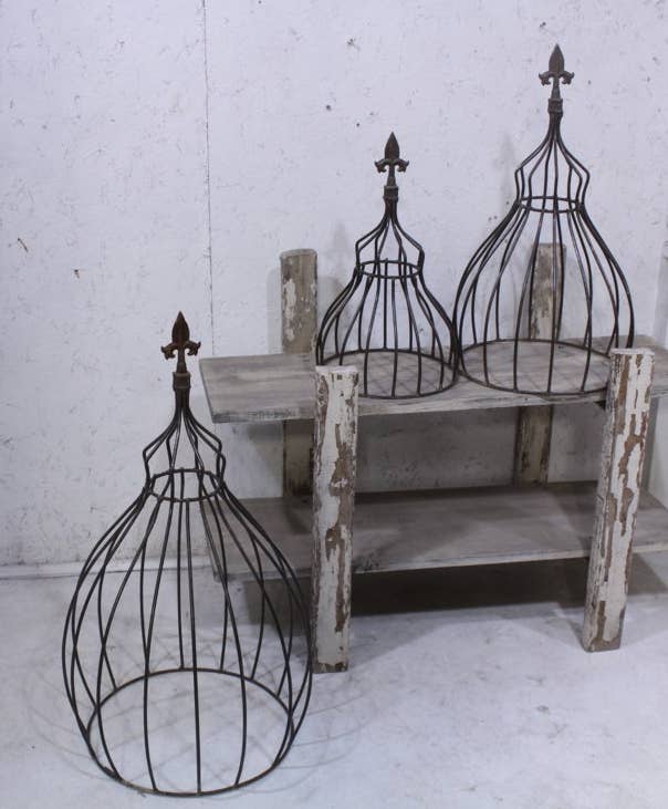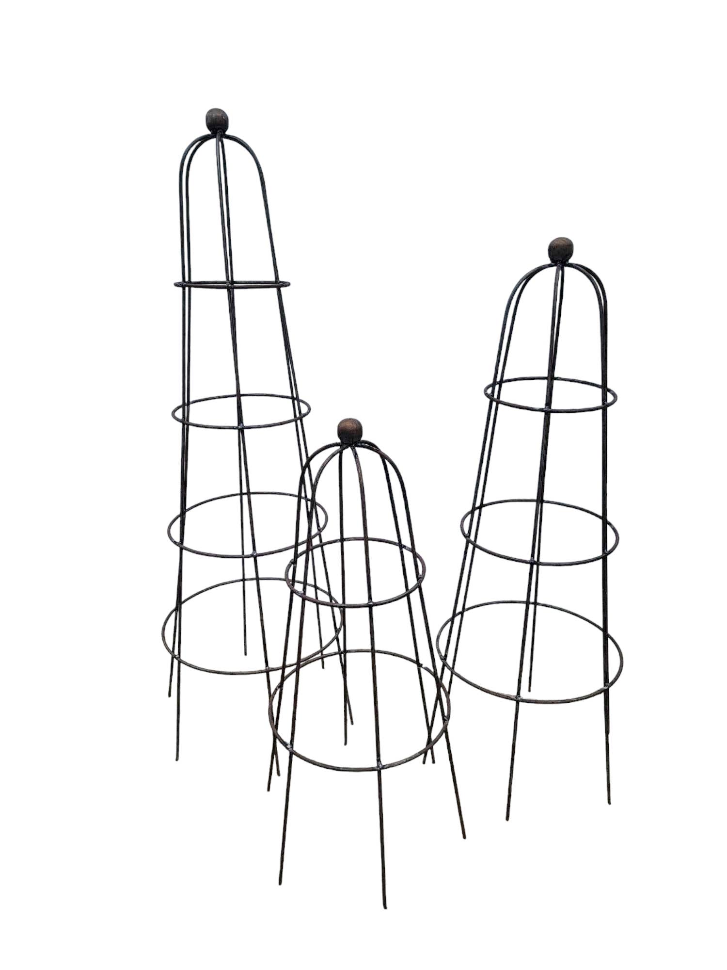 Sizes: Small: Measures 18" tall before staking, 13" after staking, x 13.5" diameter at widest point. The ring is 7.75" Medium: Measures 24" tall before staking, 20" after staking, x 18" diameter at the widest point. The lower ring measures 14.25" diameter.