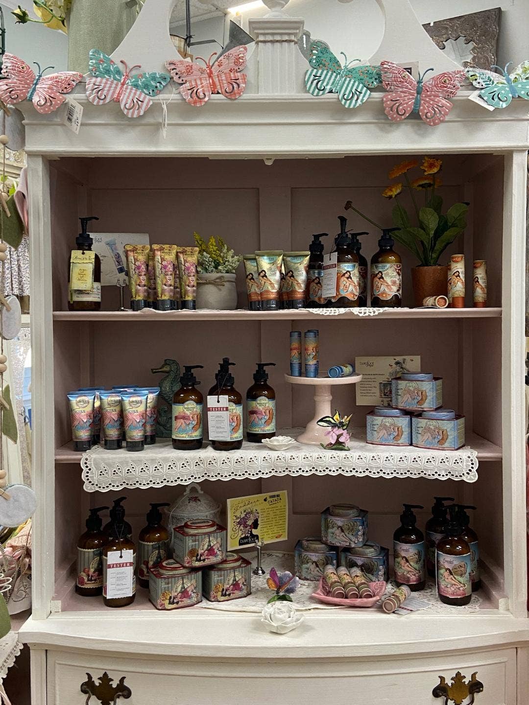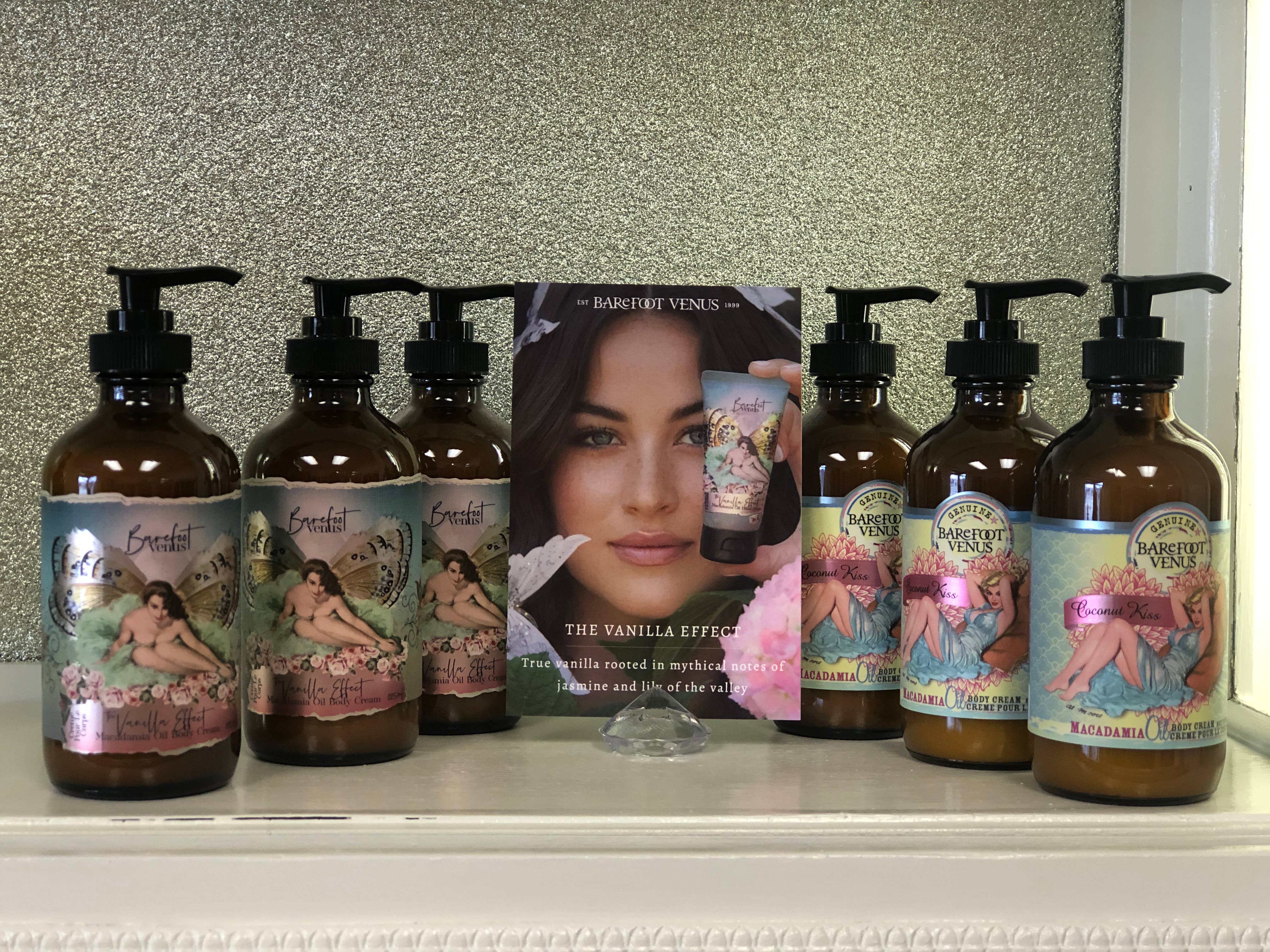 We are a vintage clothing store and Barefoot Venus products elevate and fit right into our store aesthetic with their beautiful vintage style packaging. Our best sellers so far have been the small hand creams and the jar repair creams (like buttercream frosting). Ginger and Coconut Kiss have been the favorite scents so far. We just ordered the perfume roll ons and a few new scents Black Coconut, Ruby Red and Lemon Freckle. We love them, and we’re excited to see if our customers do too.