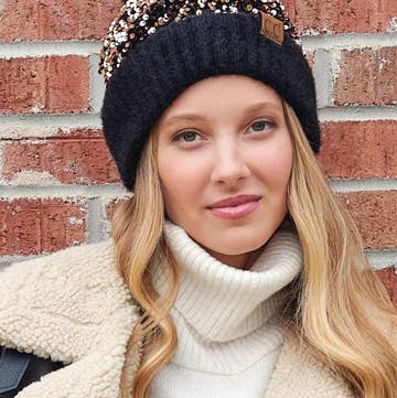 Discover the Eyelash Confetti Yarn Knitted Pom Beanie from Suzie Q USA. This stylish accessory is a must-have addition to your wardrobe. As part of our endless collection, this beanie reflects our commitment to blending modern and classic designs. This women's beanie, with its distinctive eyelash confetti yarn and playful pom detail, will not only keep you warm but also elevate your style. Trust in Suzie Q USA for quality and trendsetting accessories.
