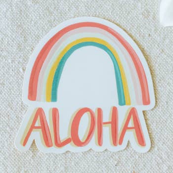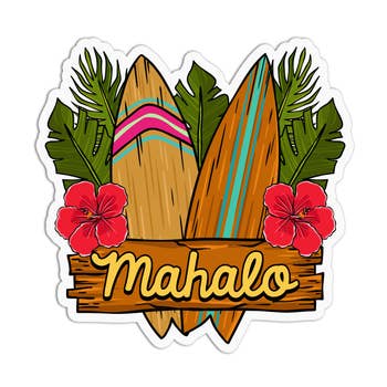 The Maui Heart Scenic Sticker is a colorfully illustrated ocean scenic featuring beautiful Hawaiian mountains, a vibrant sunset, tropical flowers, and a colorful wave. Featuring a "Maui" script in the design. SIZE: 4.25" x 3.5" DETAILS: My Stickers are made of a thick durable vinyl and coated with a protective laminate which makes them dishwasher safe and resistant to fading. All of my Stickers are designed on Kauai with my colorful Watercolor prints and illustrations.