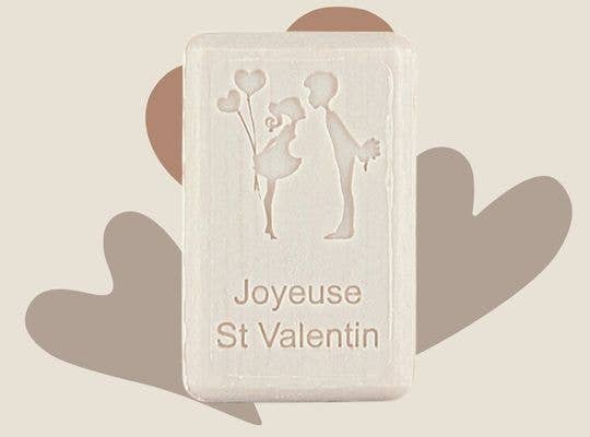 125g st valentine's day soap - bonne fêtes maman d'amour. (happy mother's day mum of love ). Made in Marseille, France. 100% vegetal. Enriched with organic shea butter. Scented with Grasse fragrances or essential oils. Paraben-free / silicon-free. Cruelty-free: tested on friends, not animals. Vegan-friendly.