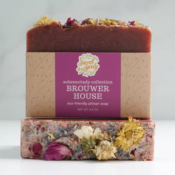 If you're looking for a luxurious and sensuous scent that lingers on your skin, then this botanical blend of patchouli, cinnamon, and ylang ylang oil is the perfect choice. It has a rich, alluring aroma of earthiness with a hint of floral sweetness that will wrap you in a comforting embrace. Experience the indulgence of this delightful, musky scent that will linger on your skin even after you wash. The Schenectady Collection is our line of products inspired by Schenectady NY, the city that Sweet Sprig calls home. Olive Oil, Coconut Oil, Sustainable Palm Oil, Water, Sodium Hydroxide, Patchouli Essential Oil, Ylang Ylang Essential Oil, Cinnamon Essential Oil, Madder Root, Chrysanthemums, Lavender buds, Roses Our soaps are made with all-natural, local and eco-friendly ingredients that are always vegan and cruelty-free. Bars are made in small batches to ensure high quality freshness with a unique scent combination that will leave your skin feeling amazing.