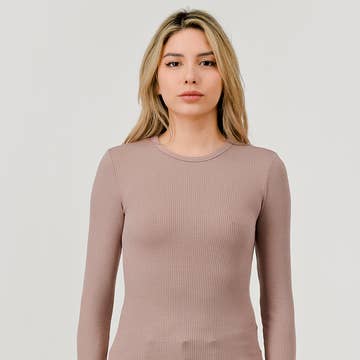 Color 5 - Wholesale T-Shirt - Women's - Solid color ribbed cotton spandex crew neck longt sleeve tee