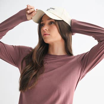 Solid color ribbed cotton spandex crew neck longt sleeve tee