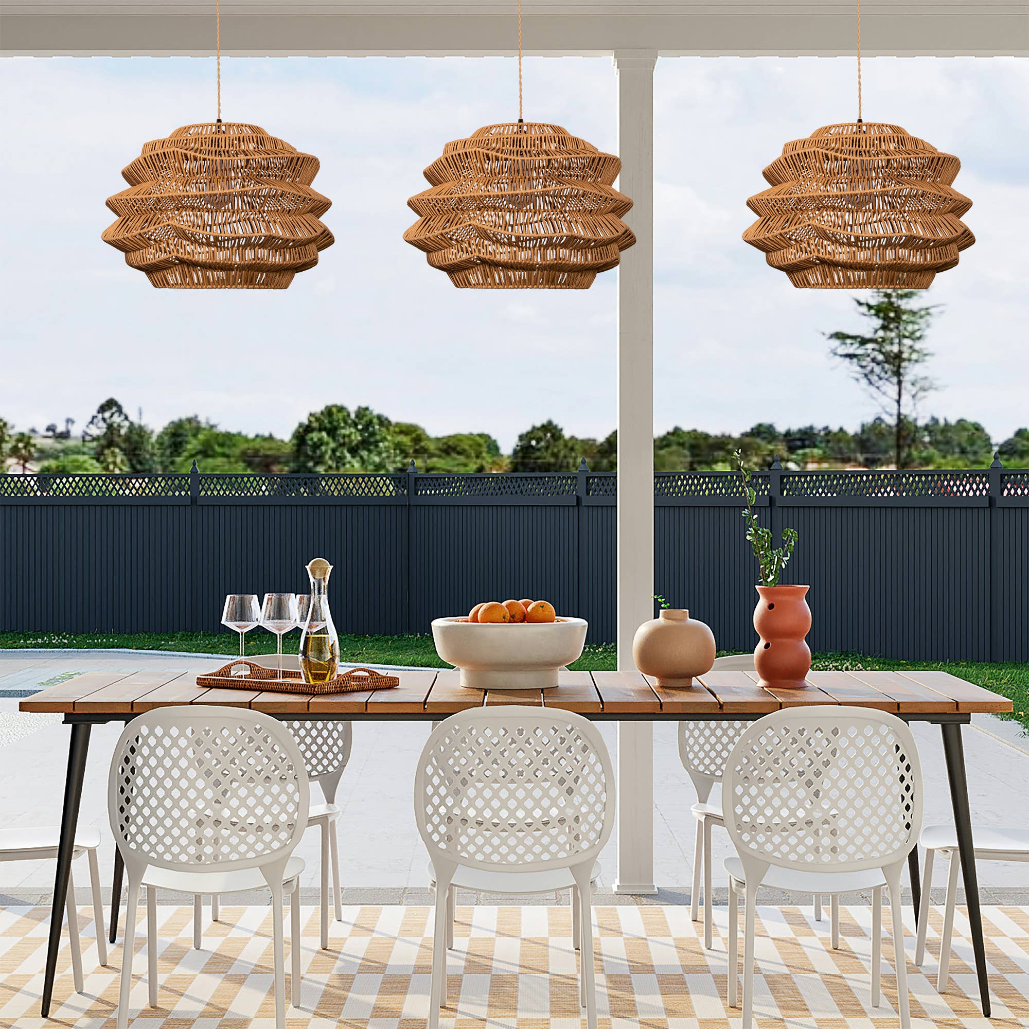 Crafted from high-quality rattan, this pendant light is handwoven by skilled artisans to create a beautiful and intricate pearl-shaped design. The natural materials and unique shape of the pendant create a warm and inviting atmosphere, making it perfect for any room in your home. * Material: Organic Rattan * Lampshade Color: Organic Light Brown * Lampshade Dimension: * 14" Diameter x 13" Height * 18" Diameter x 16" Height * 24" Diameter x 21" Height * For Covered Patio use, please see product care guide