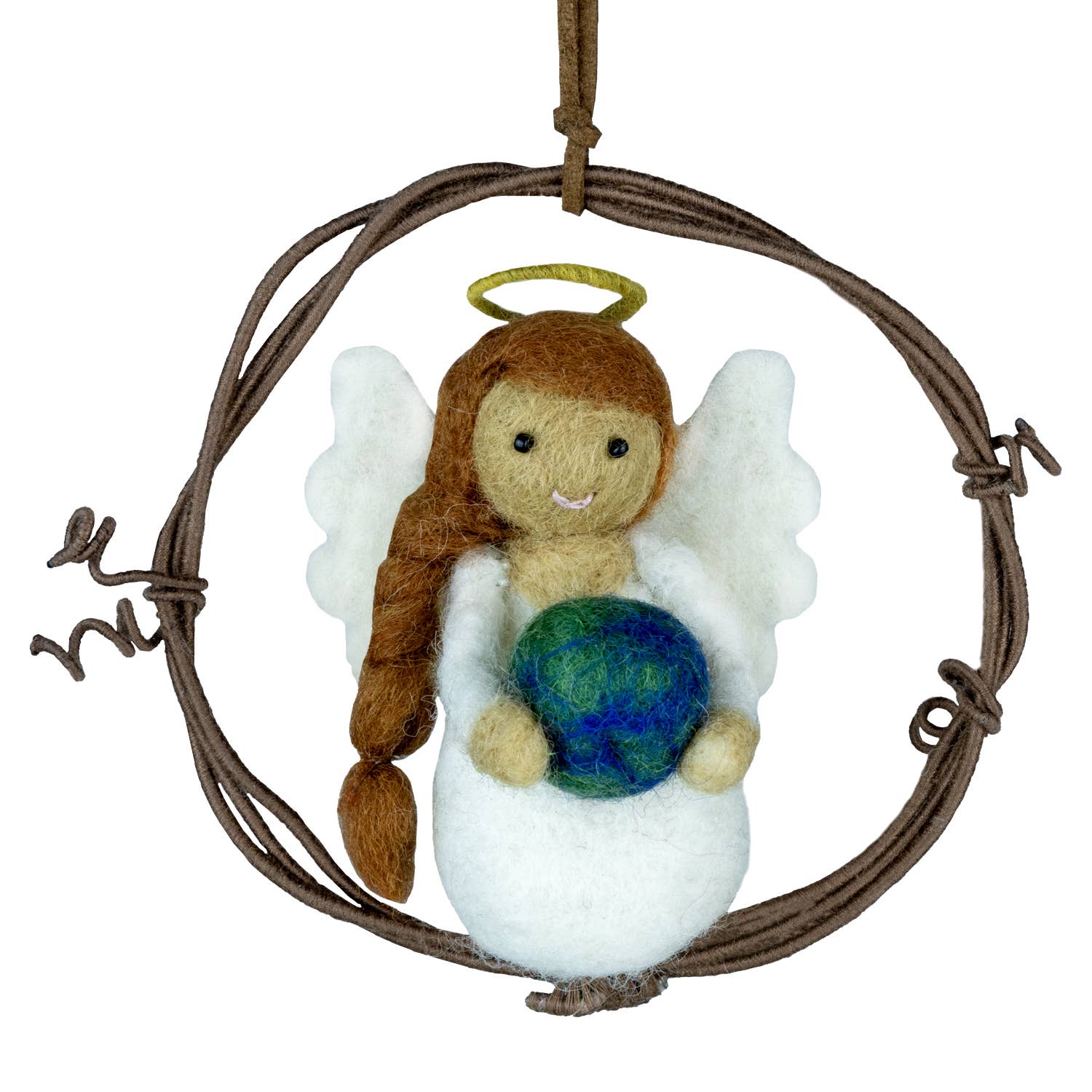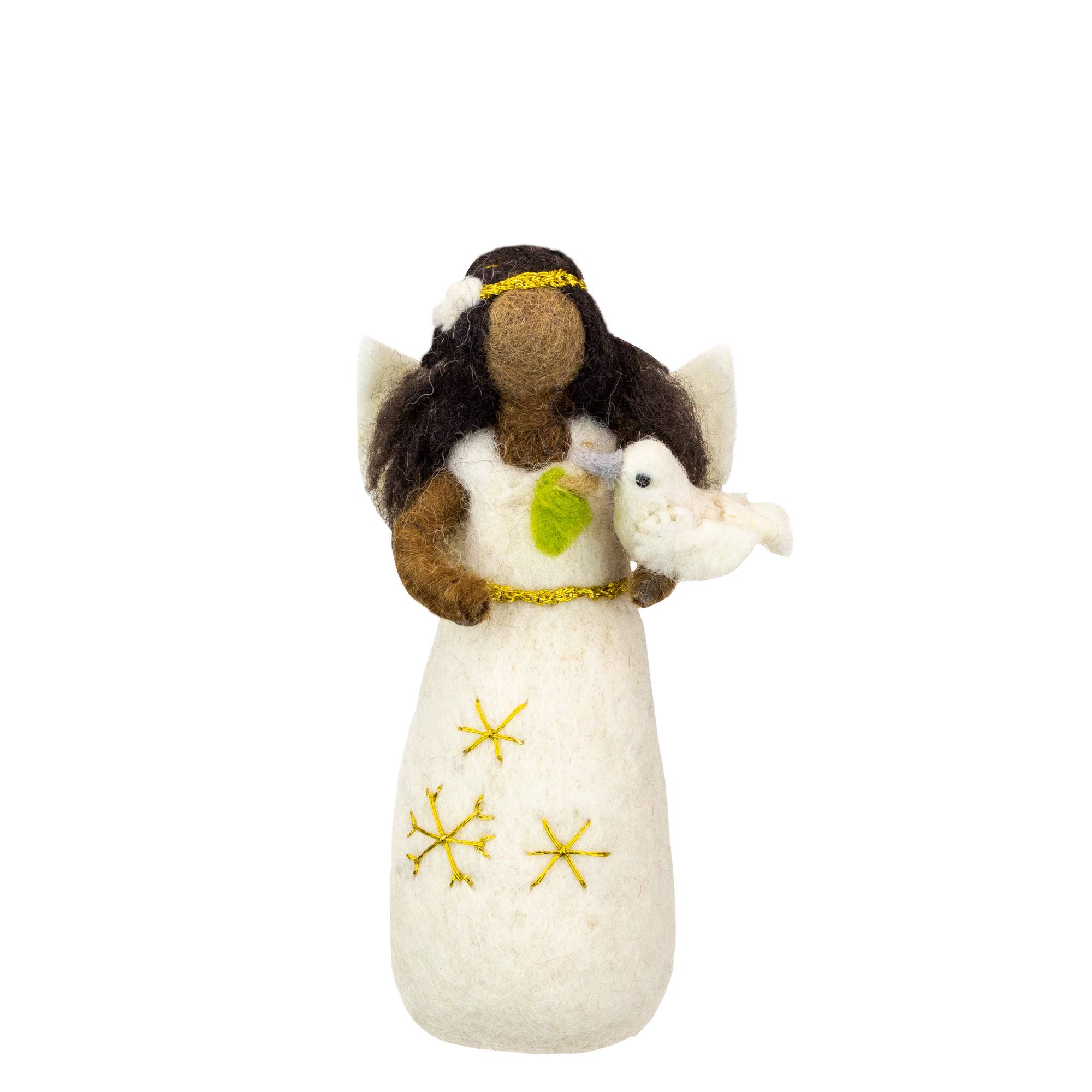 What an angel! Paired with a happy cardinal and made to stand on a table or mantle top display, or hang on a tree. Charming details make this ornament extra special. A festive 'Fair Trade Holiday' tag hangs from a 3" hanging loop.Includes a Fair Trade Holiday tag. 5.75"h