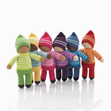 Pebble products are made entirely by hand with natural materials and as such there will be slight variations in size, color and design in line with the unique nature of this product. Materials: 100% cotton with 100% polyester fill. This toy has a rattle. Size: length approx. 19cm, width approx. 11cm. Care instructions: machine washable at 40 degrees and can be tumble dried on a low setting. vat- 19