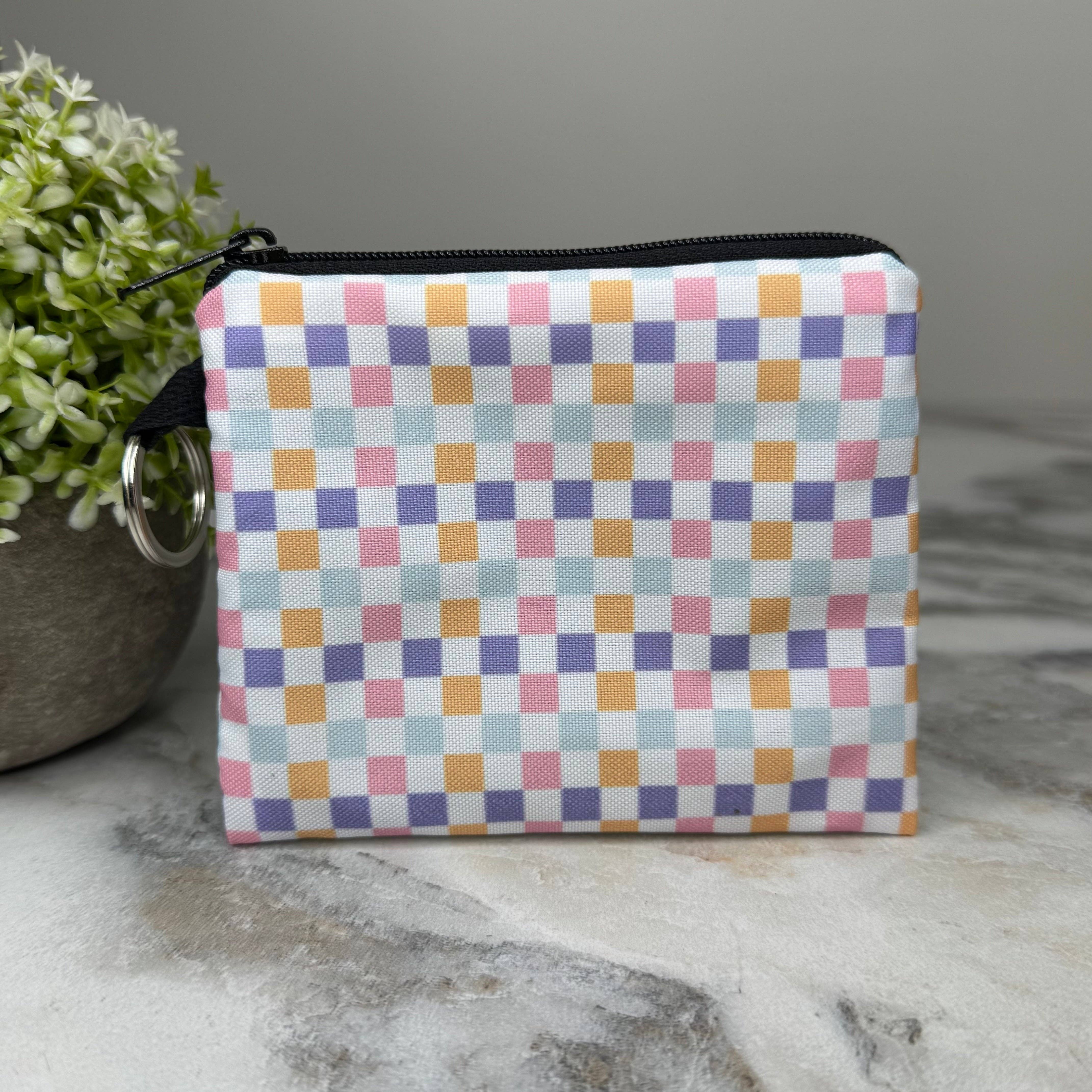 These are lightweight, a canvas-like feel outer with a black silk-like inner. * Measures 4” by 2.5” * Silver Hardware * Each is unique, placement varies Ready To Ship