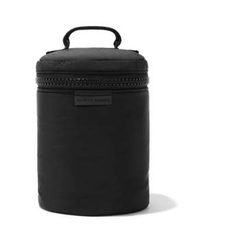 Neoprene material, 5 pod pack, middle pods (3) may be removed when less storage is needed. Design patent awarded by USPTO. Size: all pods are 8 inches in diameter. This model is approximately 13.5 inches tall. May fit in a carry-on bag depending on size of bag. Will usually fit in a backpack.