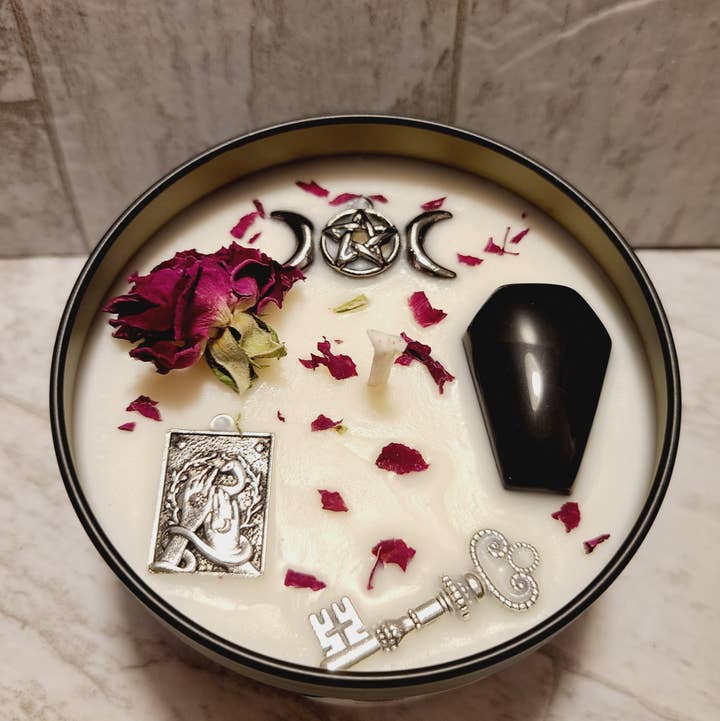 Frankincense & Myrrh Clear the Vibe! hints of bergamot, amber, frankincense/olibanum, myrrh, oud & powder. glitter added Hand poured in small batches at the Jersey Shore. Made of 100% Soy wax Phthalate free fragrance oils 🕯️Color will be natural white with some glitter. 🕯️Poured in 16oz Clear Jars with black metal lids. Vessel holds 13oz wax. 🕯️Poured in 8oz Clear Jars with black metal lids. Vessel holds 7oz wax. ✨Trim wicks to 1/4" each time you burn your candle. Allow your candle to reach a full melt pool on first burn or it will tunnel, as soy has a memory. Never burn near clutter, walls, tiny fingers or furry tails. Always snuff your candle out between burns. ✨Never burn candles for more than 4hrs at a clip, that goes for any candle. Burn on trivet, coaster or included cork to eliminate possible marking. Candle container can be cleaned out and reused easily. Simply place vessel in freezer for a bit and the wax will pop out. Please review estimated arrival time to ensure you receive your order by the date required. You can always email me to see if I can ship sooner. 🕯️Why choose soy wax? Soy wax is made from soybeans, a renewable resource, making it a more sustainable choice. In addition to being better for our planet, soy wax candles are also better for you. Paraffin candles often contain toxins and can release harmful chemicals when burned. Soy wax is a healthier option as it burns cleaner and produces 90% less soot than paraffin, reducing the risk of allergies or asthma issues. General Burn Instructions on bottom of vessel
