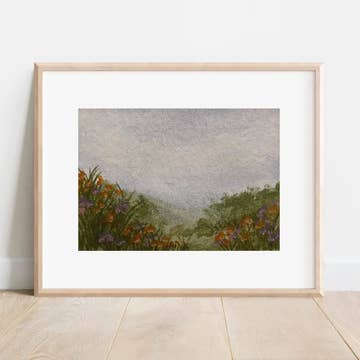 "Sunday Morning Views" is a giclee print on un-stretched canvas. Each print is packaged in a plastic sleeve with backing board for easy display.