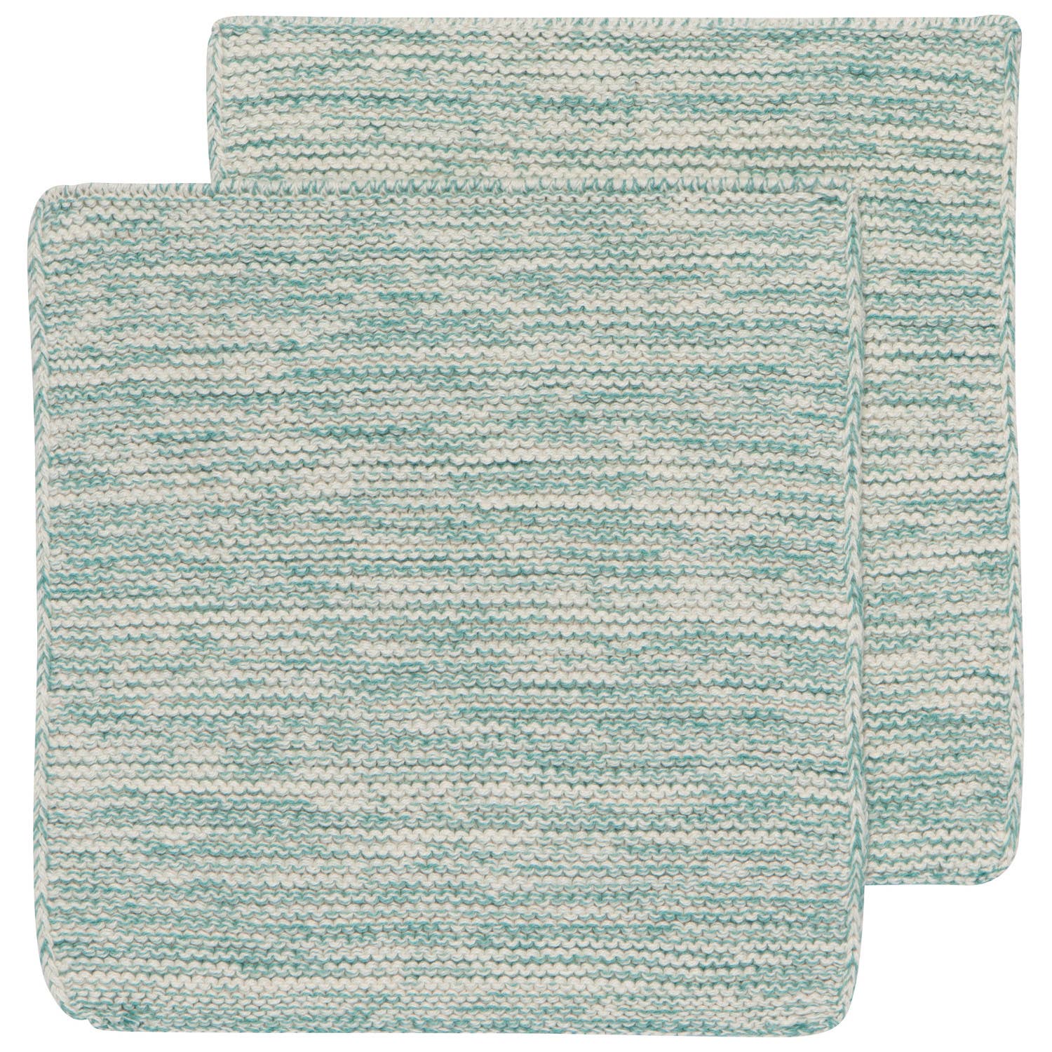 Sets of two dishcloths are soft on the hands yet tough on dirty dishes. Knit by hand with heathered cotton yarns. Part of the medley collection of color-coordinated kitchen and table linens from Danica heirloom. Size: w8 x l8in Material content: 100% cotton Care instructions: wash warm, dry low