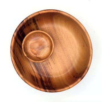 These hardwood bowls are perfect for spices, condiments or pizza toppings. Hand-carved by artisans in Nicaragua. Finished with food-safe linseed oil. Approximate size: 3 1/2" diameter x 1 1/2" high. Spoon: 5" long. Fair Trade.