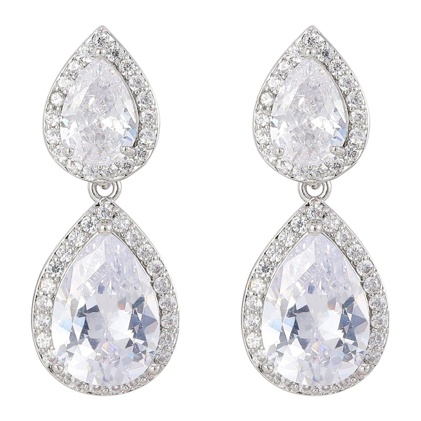 Marquise Stone Cluster Teardrop Link Dangle Evening Earrings • Size : 1.25" X 2.6" • Post Back Elegant dangle earrings featuring marquise-cut stone clusters and shimmering teardrop links. Lightweight yet striking—perfect for weddings, formal events, or adding glam to any outfit. A must-have for bridal and eveningwear boutiques.