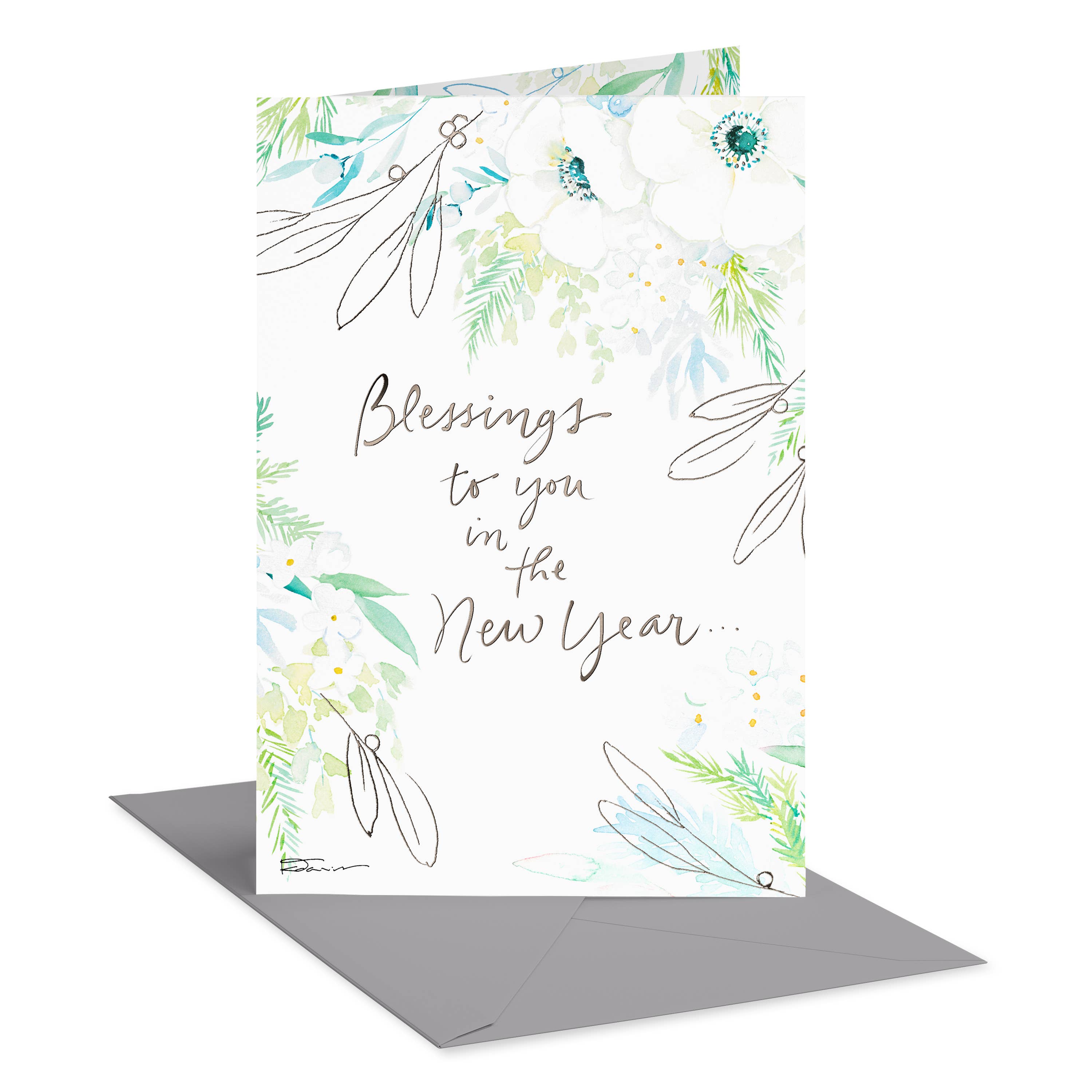 This New Year greenery themed card is an elegant and eco-friendly way to say Happy New Year. Each handmade card is printed on recycled paper that has a luxurious and uniquely textured feel. Greeting card size: A2 (4.25 x 5.5 inches). Includes envelopes, blank inside. Printed on FSC Certified 80 lb watercolor textured cardstock, made from recycled materials & renewable energy. Features a watercolor Christmas tree with gold decor and gifts beneath. Thank you for stopping by my shop, please message me if you have any questions or concerns, I am here and happy to help! All cards are designed, printed, cut to size, & packaged in-house, in my Minnesota design studio.
