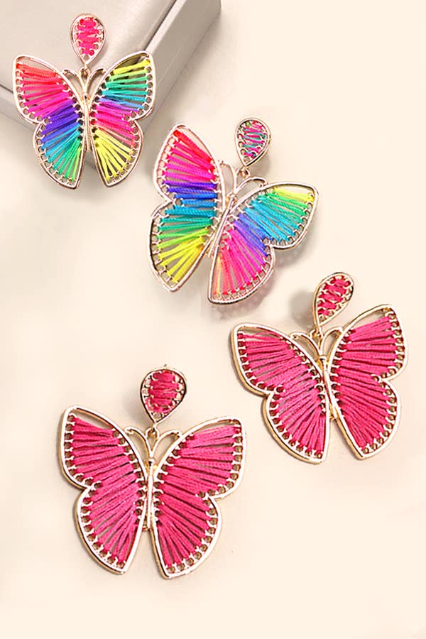I'm in love with these new earrings! Check out my shop for the matching necklace pictured in the last couple pictures. I designed the pendants on my computer and laser cut them a combination of gorgeous acrylics. They are mounted on thin (1/16") black backing to keep them extra lightweight and fun to wear. They measure about 3.5" long with the largest butterfly at 2" wide. The top butterfly has posts glued to the back. If you prefer clip on's no problem- just drop me a line in the notes to seller section! Did you know that almost all of our laser cut designs can be made into pins or magnets? Drop us a line to find out more!