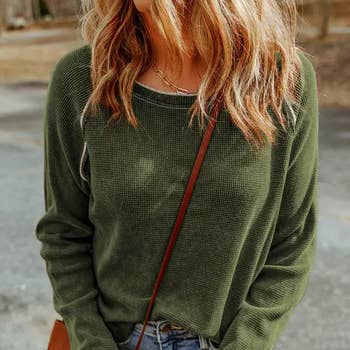 So comfy with an effortless boho silhouette, the On The Go V Neck Ribbed Essential Tee is a must-have! A boho essential because: * Comfy and stretchy ribbed knit fabric that moves with you all day long * Relaxed and loose silhouette with a flattering v-neckline * Dropped shoulders with 3/4 length sleeves for a laid-back and relaxed vibe * Mini side slits along the side for added comfort and style *Due to lighting and differences in monitors, actual colors may vary slightly from what appears online. Model is 5'8" and wearing a size Small. Approximate measurements are as follows: * SMALL: Bust: 56", Waist: 56", Hip: 56" , Length: 25", Sleeve length: 16" * MEDIUM: Bust: 58", Waist: 58", Hip: 58", Length: 26", Sleeve length: 17" * LARGE: Bust: 60", Waist: 60", Hip: 60", Length: 27", Sleeve length: 18" * X-LARGE: Bust: 62", Waist: 62", Hip: 62", Length: 28", Sleeve length: 19" * 96% Polyester, 4% Spandex * Hand wash cold, Lay flat to dry * Made in USA