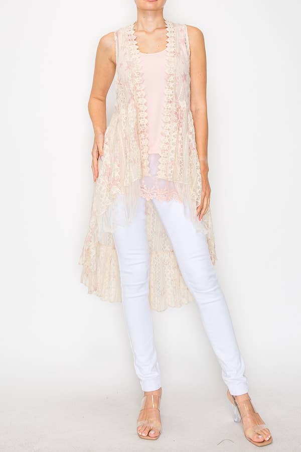 Whimsical Sleeveless Lace Midi Dress With Unattached Slip - 46-4609 BG/J FL