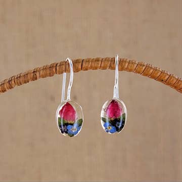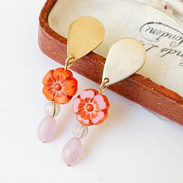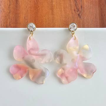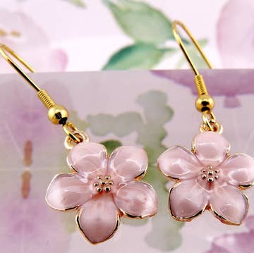 Wholesale Hand-Illustrated Cherry Blossoms | Handmade Acrylic + Resin Dangle Earrings