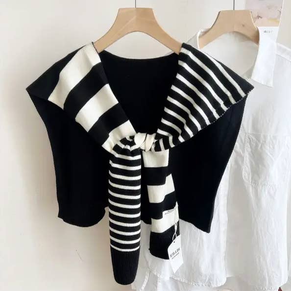 STRIPED KNITTED OUTER SHAWL_CWASC0758