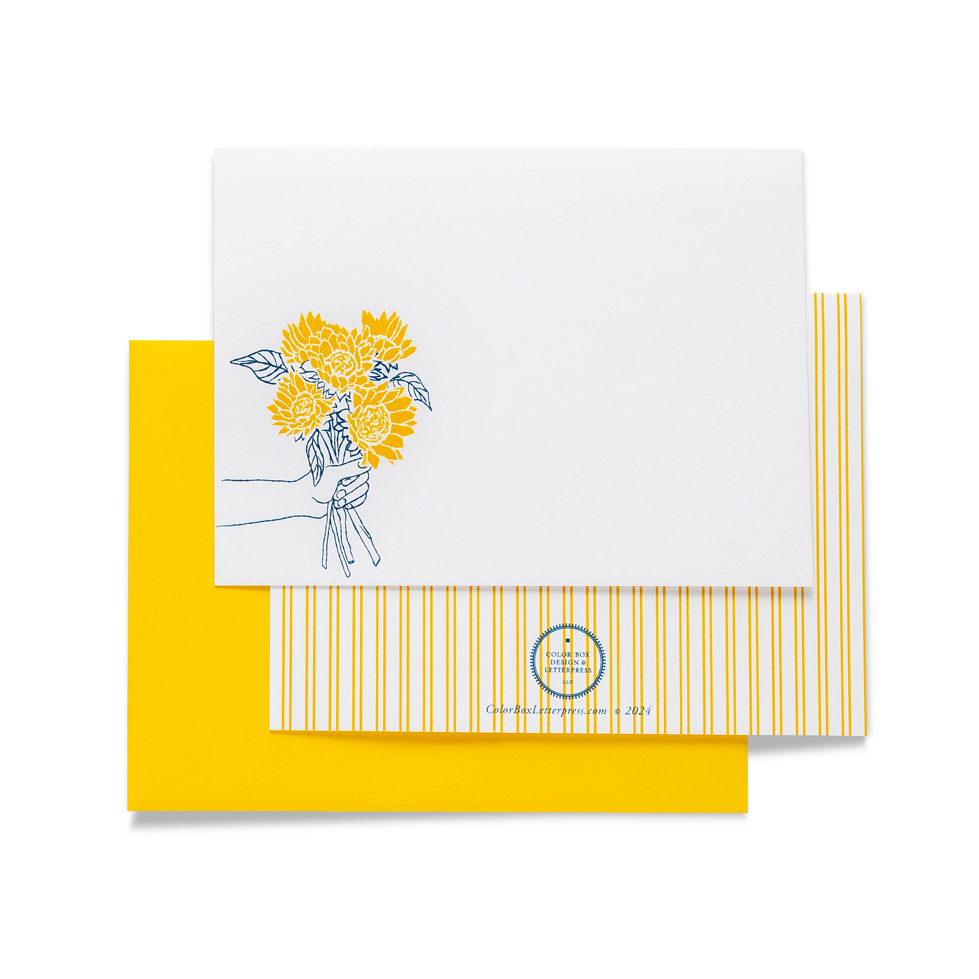 Brighten someone's day with our Stat A2 Daisy notecards by Giftsland. This delightful set includes 5 vibrant yellow cards, each adorned with a charming daisy design. They come with envelopes, making them ready for your personal messages. Handcrafted in Nepal, these cards are part of our commitment to eco-friendly practices and support of local artisans. They're more than just stationery - they're a testament to the beauty of handmade craft and sustainable living.