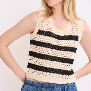 Wholesale AW1063 | Knit Sweater Cotton Polyester See Through Tank Top