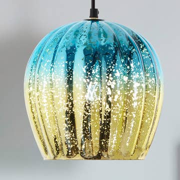 9"W Gold Pendant with Teal & Gold Ombre Mercury Glass Shade