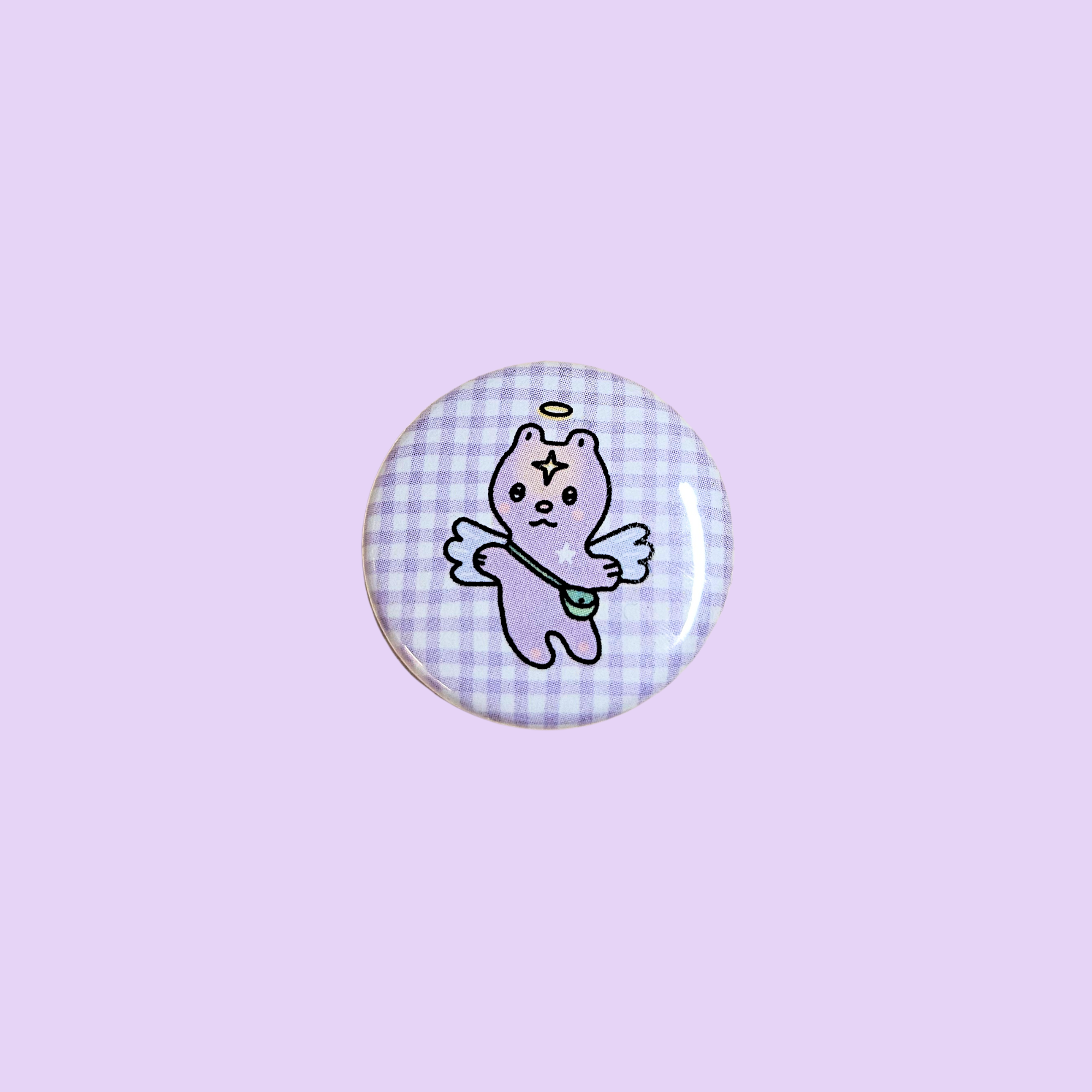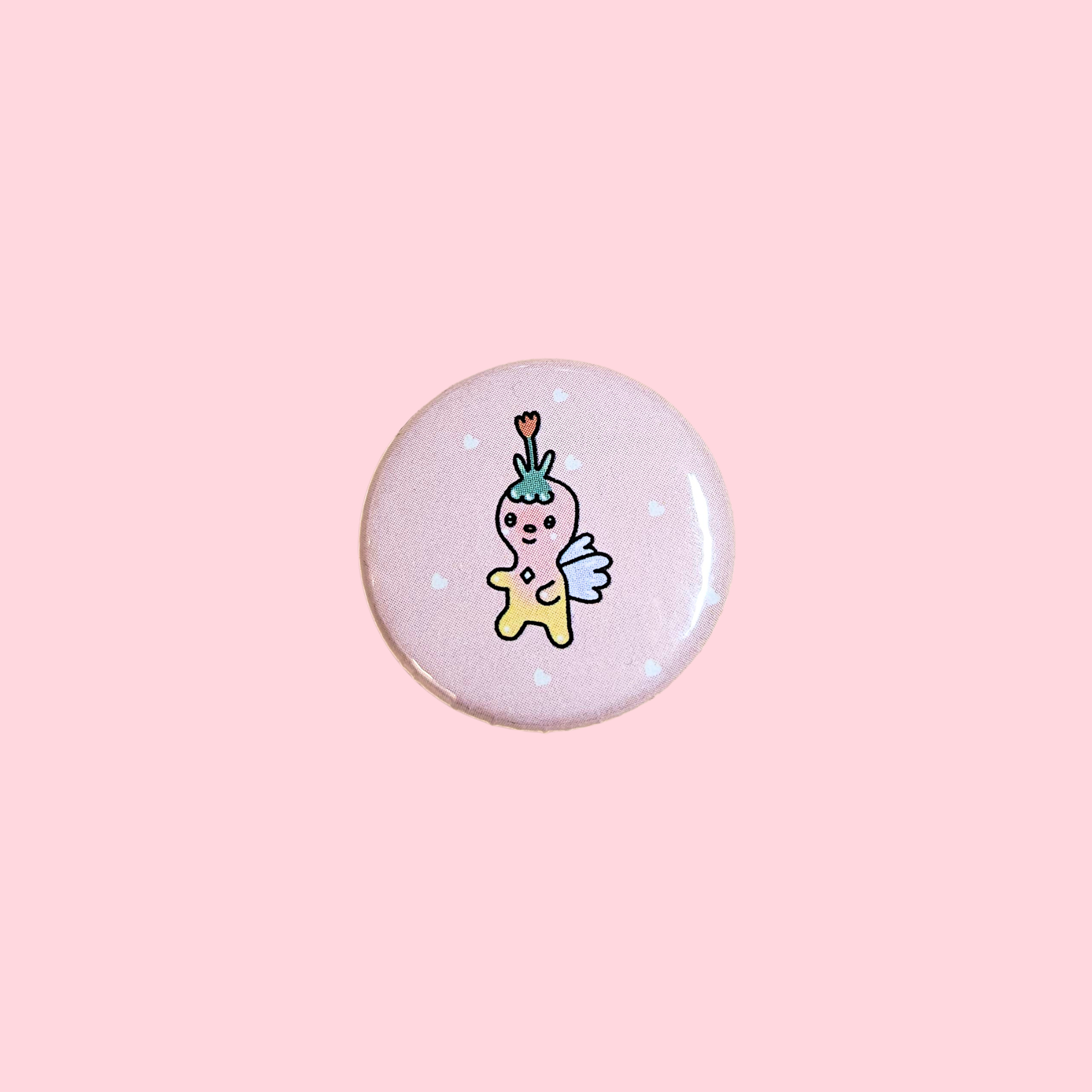 Kewpie doll pin ~ 1" pinback button Designed and made in Winnipeg, Canada ~ Lauren Wittmann is a multidisciplinary artist practicing on Treaty 1 Territory in Winnipeg, Canada. With interest in fibre arts, print making, and ceramics, Lauren has been creating works in an assortment of mediums since they were small. After receiving her diploma in Graphic Arts in 2017, she opened up a brick and mortar shop and studio with her mum called Riley Grae.