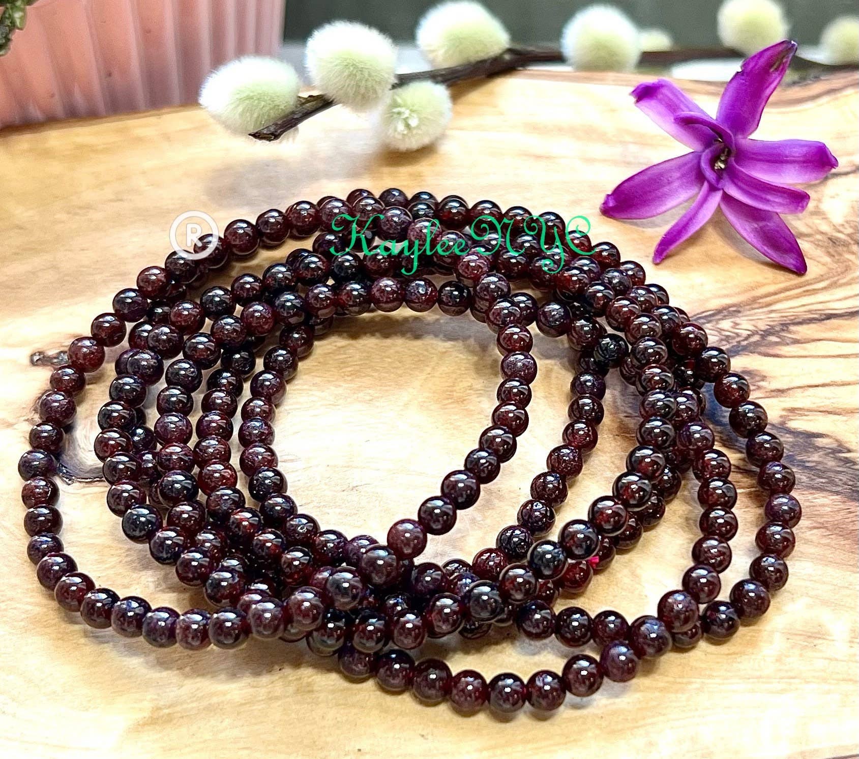 Pack of 5 Garnet Crystal Bracelets 8mm Beads, 3" diameter with elastic band. Garnet is celebrated for its ability to awaken the senses, ignite passion, and promote physical and emotional well-being. Ideal for wholesalers, healers, and spiritual seekers, this pack of 5 bracelets offers both convenience and value, ensuring you always have a radiant supply of these empowering accessories at your fingertips.