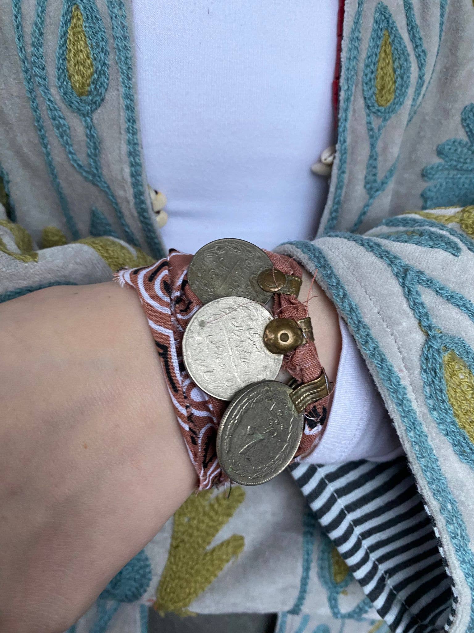 Bandana necklace with vintage coins