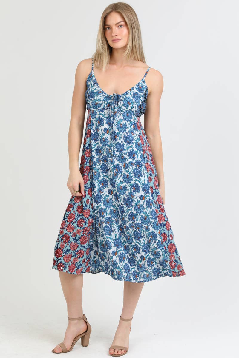 SALE! Vintage Color Block Floral Print Midi Dress w Pockets