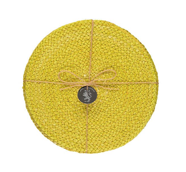 A new colour for this collection. Woven from finer, silkier, natural jute fibres by skilled artisans, a round jute serving mat / placemat, spun from a finer fibre creating this silkier finish, here in Eau-de-Nil. No two pieces are exactly alike, suitable for everyday dining, jute is a natural insulator so great at protecting the table from anything hot. They look wonderful paired with our recycled glass tumblers and their matching coloured coasters. They work well in both contemporary and traditional interior styles, making them a really versatile piece to bring texture and colour to the table. 14'' D / 36 cm D A Fair Trade piece, woven in Bangladesh. Wipe clean only * Please note, the mats are woven from natural, processed jute fibres and as such there can be some colour and texture variations within sets, which is a part of their charm and simply a reflection of how they are made and finished.