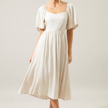 Made in Canada Aesthetic: Bohemian and Classic Dress Style: Baby Doll and Sundress Fit: Contemporary Neckline: Sweetheart Occasion: Everyday and Work Pattern: Floral Season: Spring/Summer Sleeve Length: Short Sleeve Product Language: English Fabric: Exclusive Prints (Limited quantities) : 100% Modal Solids : 30% Linen, 70% Viscose Weight: 150 g (5.29 oz) Product Materials: Vegan Packaging: Recyclable, Recycled, and Reduced Production: Ethically sourced