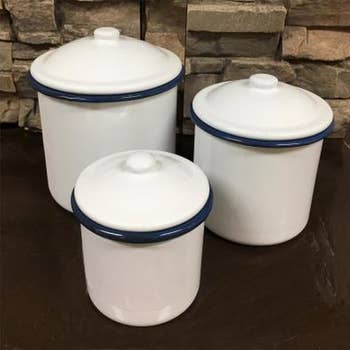 Wholesale Vintage White Enamelware Canister With Lid Favor (4)