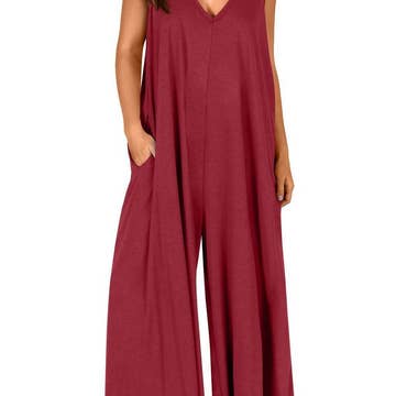 SKU: CWSJS0719-WINE-S Made in China Aesthetic: Casual and Classic Care Instructions: Hand wash Fabric: 95% POLYESTER, 5% SPANDEX Fit: Contemporary Occasion Theme: Everyday Occasion: Everyday and Holiday Pant Length: Floor Pattern: Solid Rise Style: Regular Season: Spring/Summer Sleeve Length: Sleeveless Product Language: English Product Materials: Recycled Packaging: Recyclable and Recycled Production: Ethically sourced and Fair trade