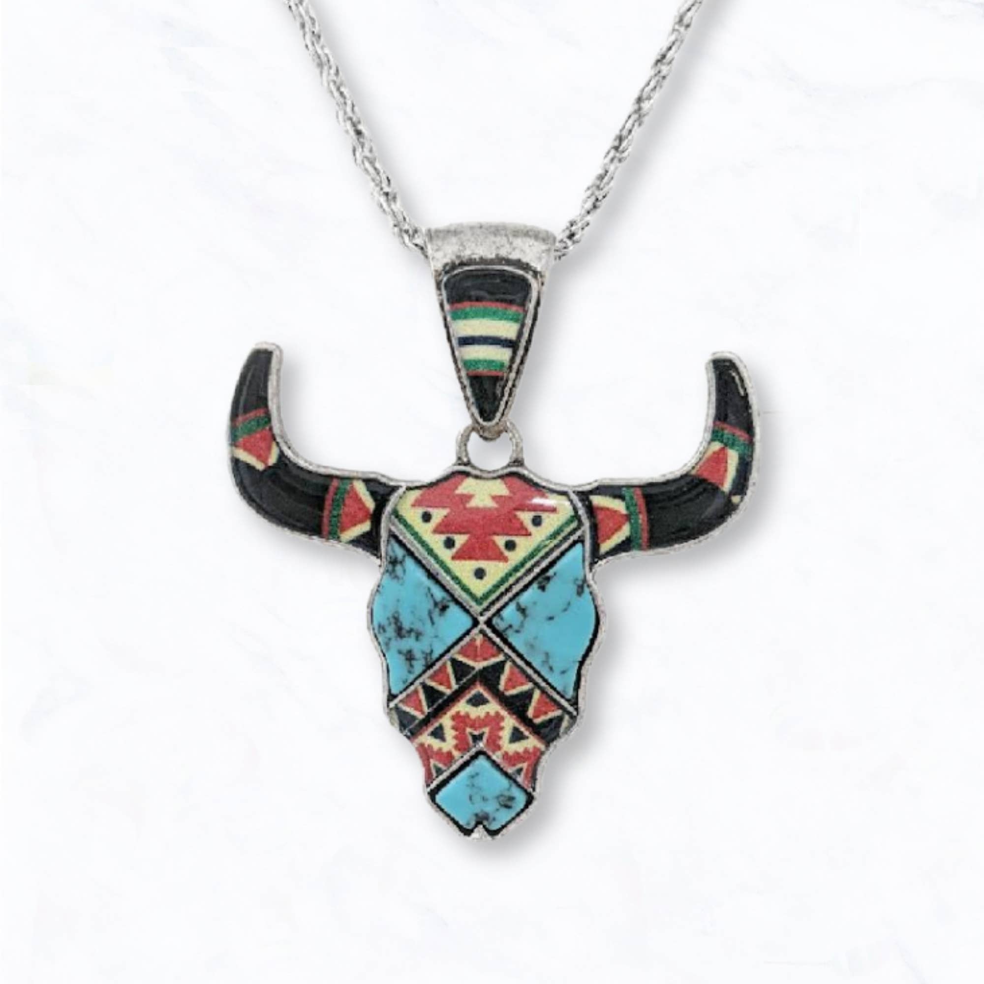 Enhance your style with the captivating Aztec Buffalo Gold Native Necklace Set, accentuated by stunning turquoise cabochon. Experience the rich culture and beauty of this carefully crafted accessory. Make a statement and stand out with this unique and eye-catching piece. Perfect for any occasion, this necklace set is a must-have for anyone who appreciates quality and allure.