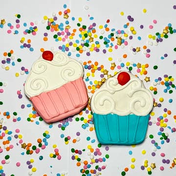 Our cookies are handmade in small batches, and decorated with icing that that won't melt or crumble. Cookies have a 1 year shelf life. Cookie designs are made to be shown in small vignettes, and make great displays in your bakery case, at your point of sale or on a table. Size and color of cookies may vary.