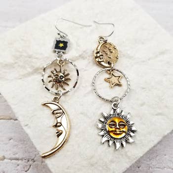 Featuring phases of the moon inside of a thin hoop and a silver sun charm -Two inches in length -Hypoallergenic hooks