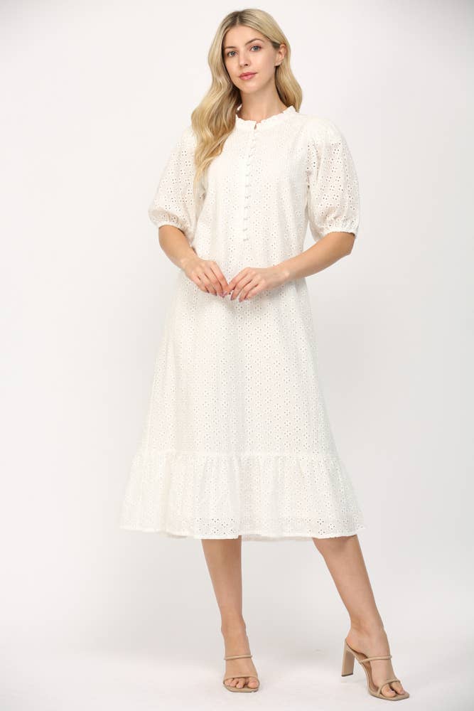 TEXTURED PEASANT SLEEVE BABYDOLL DRESS