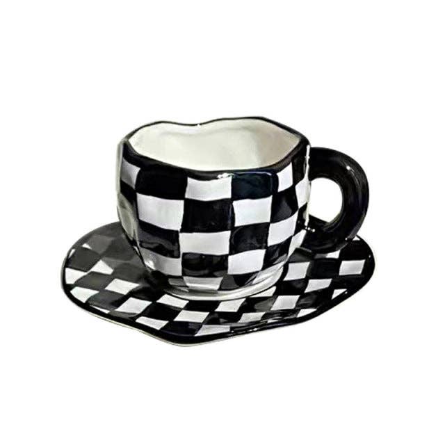 Cuss Yeah Designs Black Cream Checker Pattern Coffee Mug