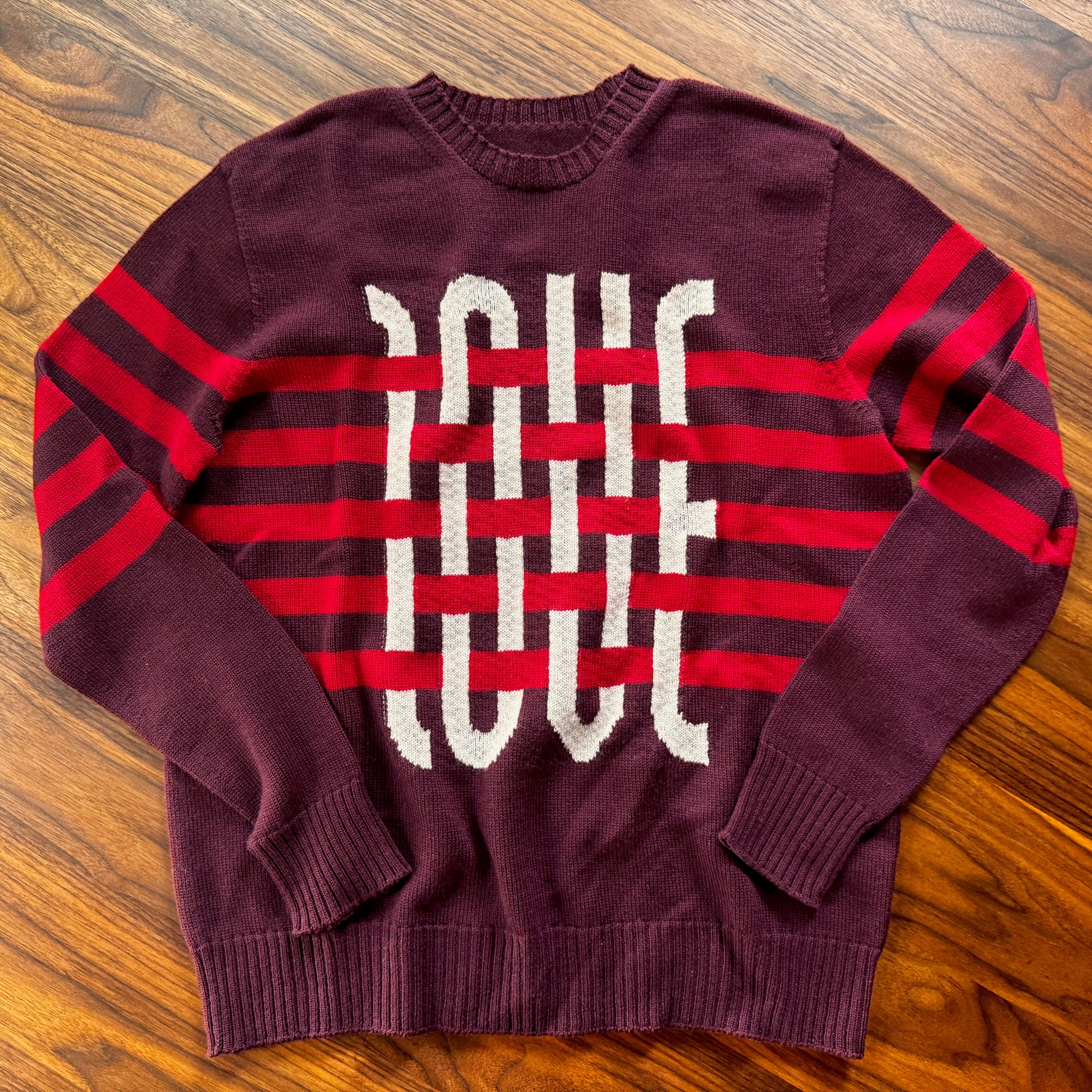 Made from 100% Merino Wool. Unisex crew neck sweater with Celtic Jacquard design. Jacquard design around the sweater gives this traditional crew neck cable sweater a striking stylish feature. The Jacquard pattern is knit using contrasting colours which compliment the garment.
