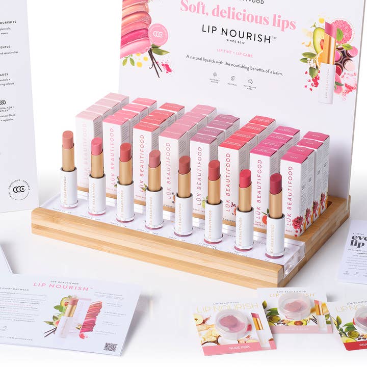 ![Lip Nourish™ Lipstick TOP 8 (40) Bundle inc FREE Display for wholesale by LÜK BEAUTIFOOD [🇦🇺 AUS + USA🇺🇸]](https://cdn.faire.com/fastly/5347104a6ba8c283b8b8d17df9ff2226d85e91486696d01aede2081de171dac2.jpeg?format=jpg&precrop=1195%2C1195%2Cx671%2Cy406%2Csafe&width=720)