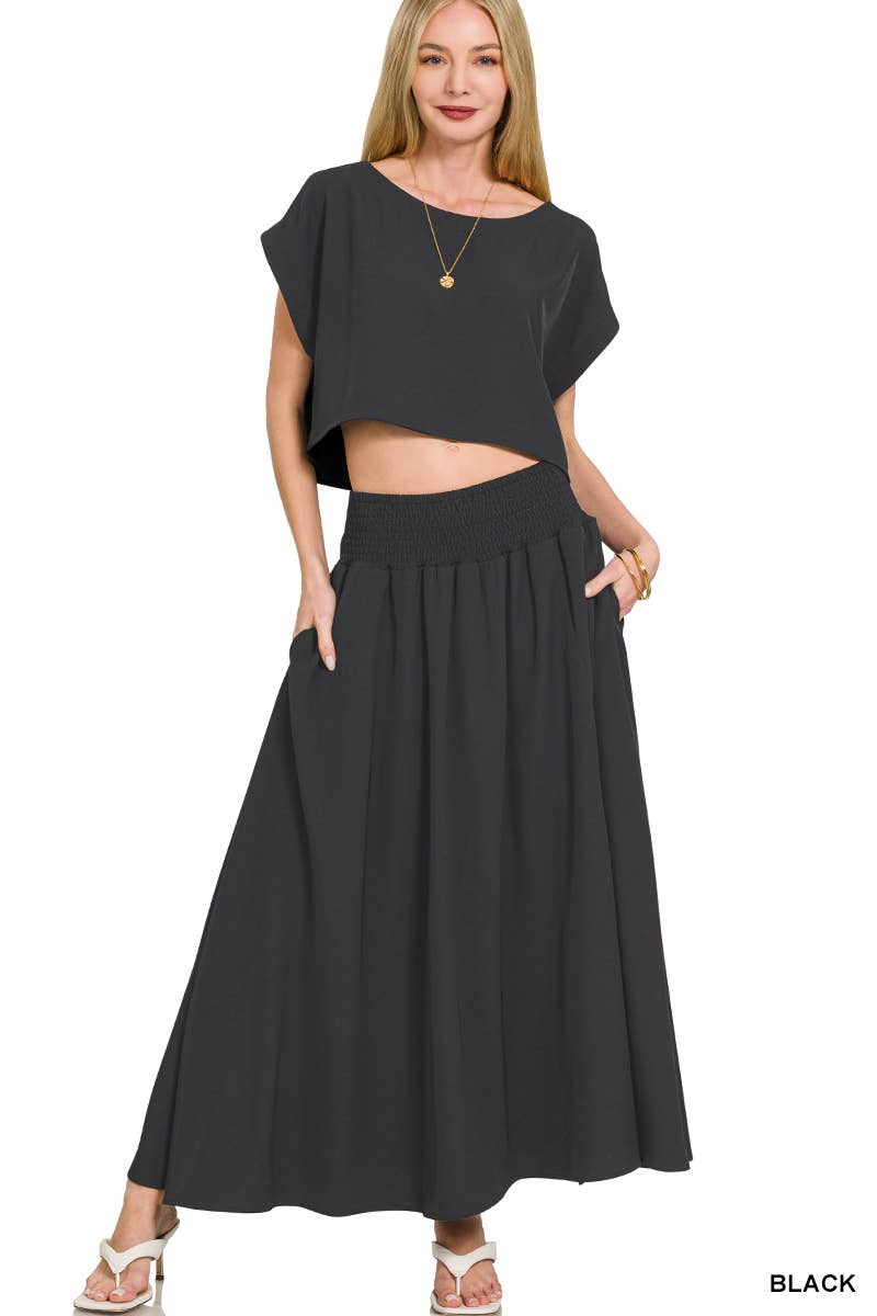 *FEATURES: Loungewear Set/Two-Piece Set/Top and Pant Set/Lightweight Woven Fabric/Rounded Neckline/Short Sleeves/Fitted Bodice/Cropped Hem/High,Elastic Waist/Side Pockets/Wide-Leg Pants/Full-Length *COLOR: DESERT ROSE/BLUE/BLACK *SIZE: S/M/L/XL/XXL *STYLE: 70639 *Support individual sizes and individual pieces. *2-5 days processing time. *Made in China. *Due to the style differences, please check out the last image for the size chart of this style.